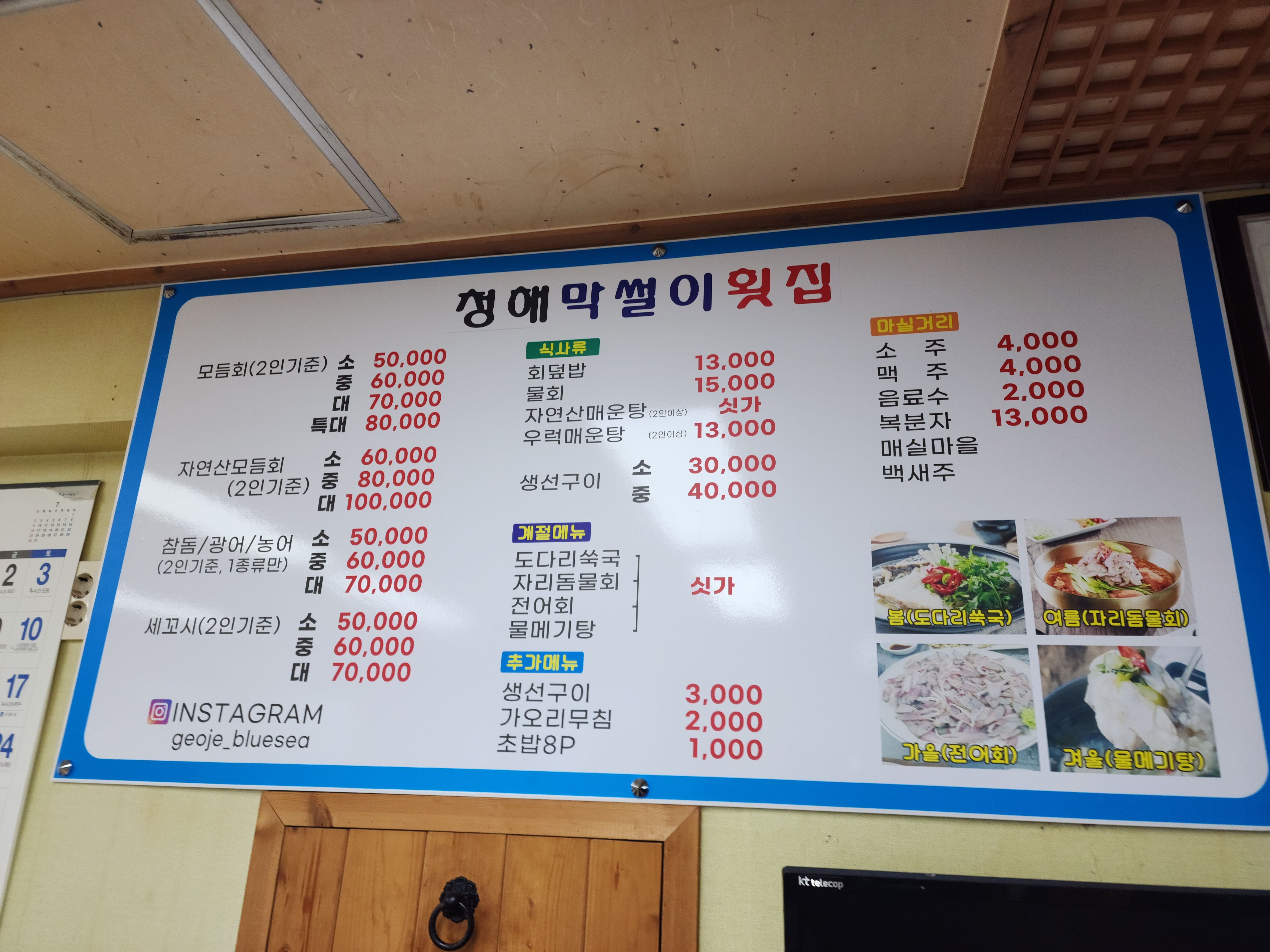 거제 장승포 청해막썰이횟집 주소: 경남 거제시 장승포로 49 신부월드 상가 101호